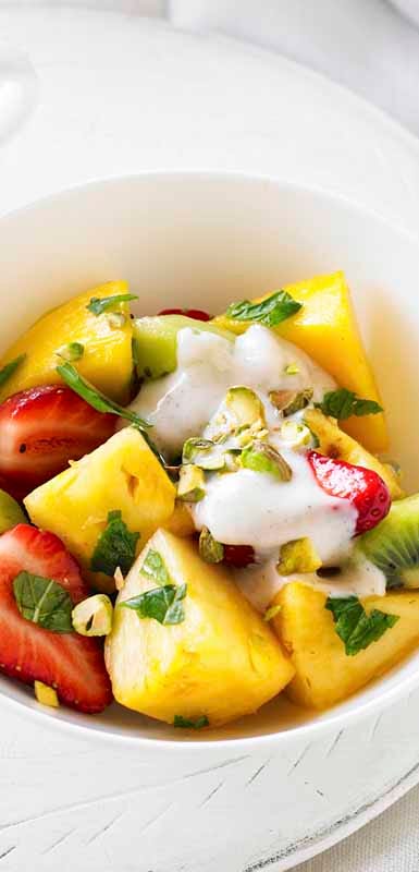 5. Top your fruit salad with ZeroPoint 99% fat-free yoghurt or why not try a dollop of low-fat ricotta cheese, a pinch of ground cinnamon and a few drops of vanilla extract.