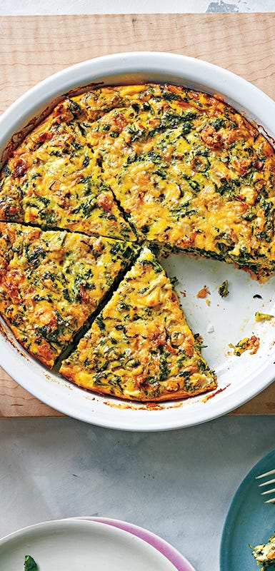 This collection of breakfast-turned-dinner recipes ranges from sweet to savory options. There are eggs galore and some bacon too, but also plenty of fruit and veg tucked in for nutrition and fill-you-up fiber. (And if you want to cook eggs perfectly every time, head here for tips!)