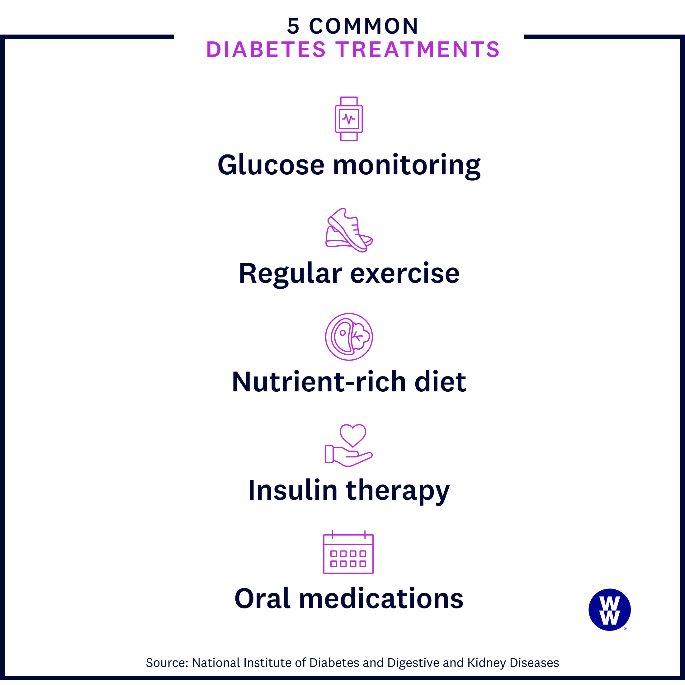 The diabetes treatment that’s right for you largely depends on the type of diabetes you have, how severe it is, and what your doctor recommends based on your unique health history. That said, treatment plans tend to have a multi-pronged approach made up of the following.