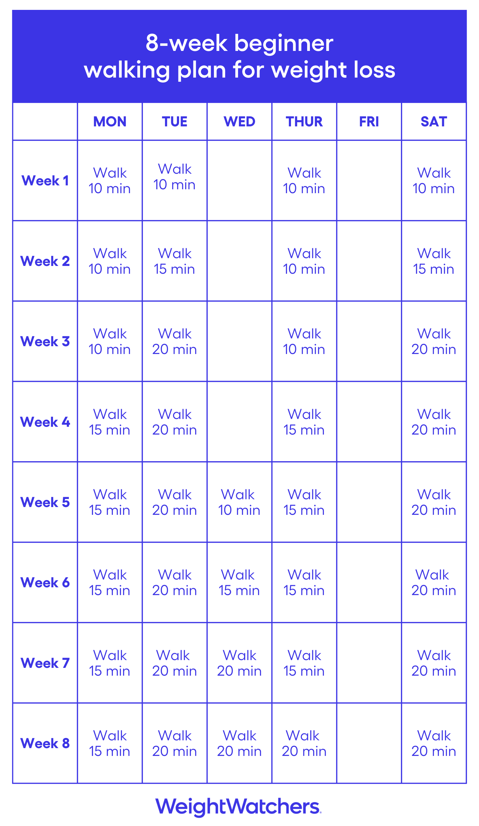 How should you walk each day to lose weight? Public health guidelines recommend that adults do at least 150 minutes of moderate-intensity activity (like brisk walking) per week, and how and when you reach that goal is your choice. Check in with your current activity level, and aim to increase your walking in a way that works best for you. That might mean a 15-minute stroll after dinner during the week, with longer routes on the weekends; 30-minute walks five days a week; or simply getting up and walking whenever and wherever you can. If you’re just getting started, Stanten recommends focusing on consistency. Moving for even five or 10 minutes on your busiest days still counts and helps build the habit, she says.