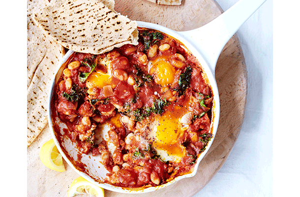 This simple dish is popular as it uses every-day low-cost ingredients you usually have at home, like canned tomatoes, chilli flakes, eggs and capsicums. There are so many tasty variations and additions to a Shakshuka. Try adding in spices like cumin, paprika, cannellini beans and kale like in our shakshuka recipe below.