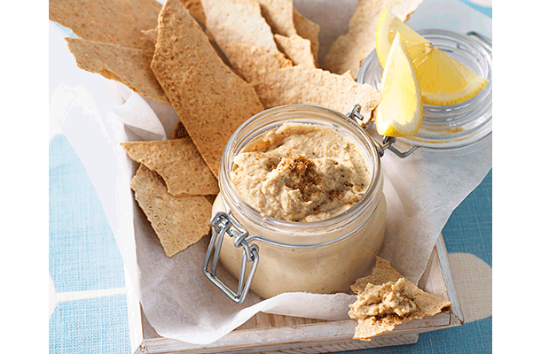 Hummus is made from blended chickpeas, olive oil, lemon juice, garlic, and tahini until a creamy smooth dip has formed. This dip is versatile and makes a great snack - often served with vegetable sticks or pita bread. Hummus is made from chickpeas, a legume which is high in fibre and packed with vitamins. You can also try flavoured varieties, such as pumpkin and beetroot.