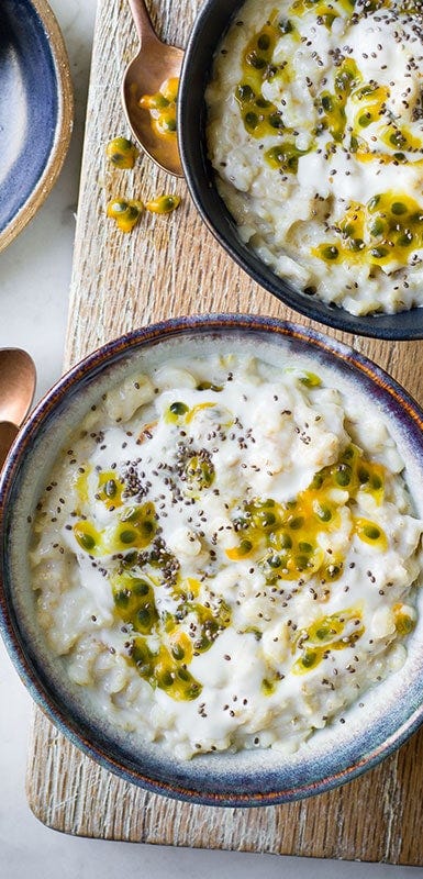 If you’re watching your energy intake but love carbs, oats and porridge could be one of the best bargains around. The reason? Porridge is low in energy density, which basically means it’s low in calories (a.k.a. kilojoules) relative to its weight. Even though dry oats are dense and compact, add water and heat and they swell up a lot. So after ½-cup of oats are cooked, they balloon into a big, visually-satisfying serving for only around 640 kJ (or about 150-calories).