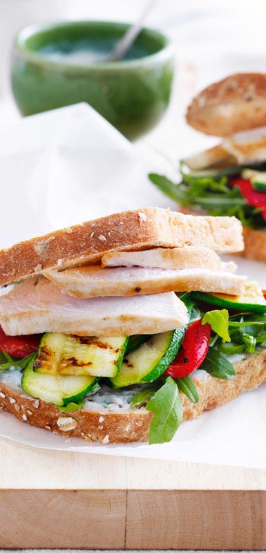 Chicken and capsicum sandwich with basil aioli (6 Points)
