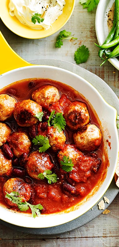 Mexican turkey meatballs with 1 medium wholemeal pita bread (6 Points)