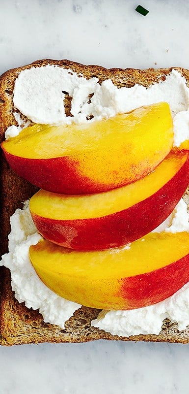 2 pieces wholemeal toast with 1 tbs reduced-fat cream cheese and ½ sliced tomato (7 Points)