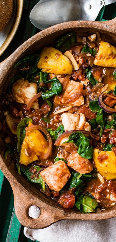 Easy fish stew with 1 wholegrain bread roll (3 Points)