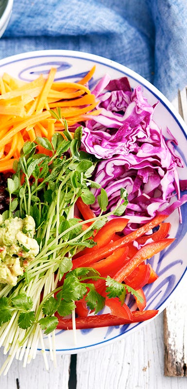 Tip: Include purple cabbage and Spanish onions in a bright coleslaw, and chargrill eggplant or roast beetroot for nutritious side dishes. In summer, snack on fresh blueberries, and during autumn and winter, add the frozen variety to porridge.