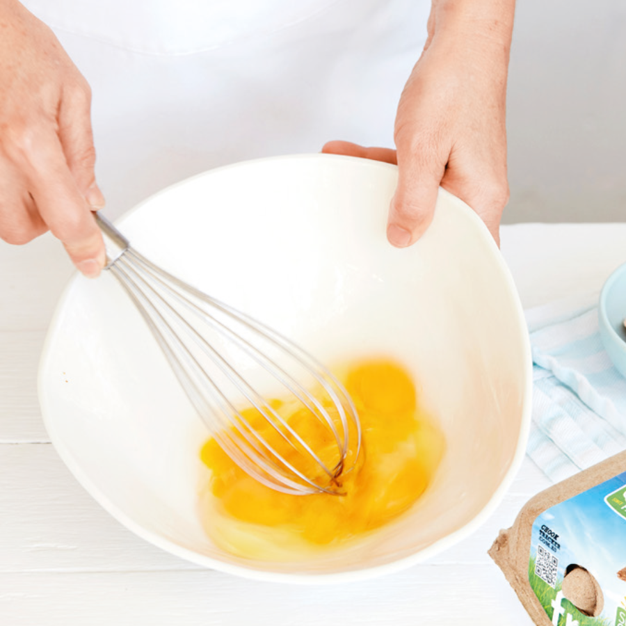 Tip: Whisking makes sure the yolks and whites are thoroughly combined and brings air into the mixture for a fluffier end result – whisk just as you’re ready to cook, not ahead of time.