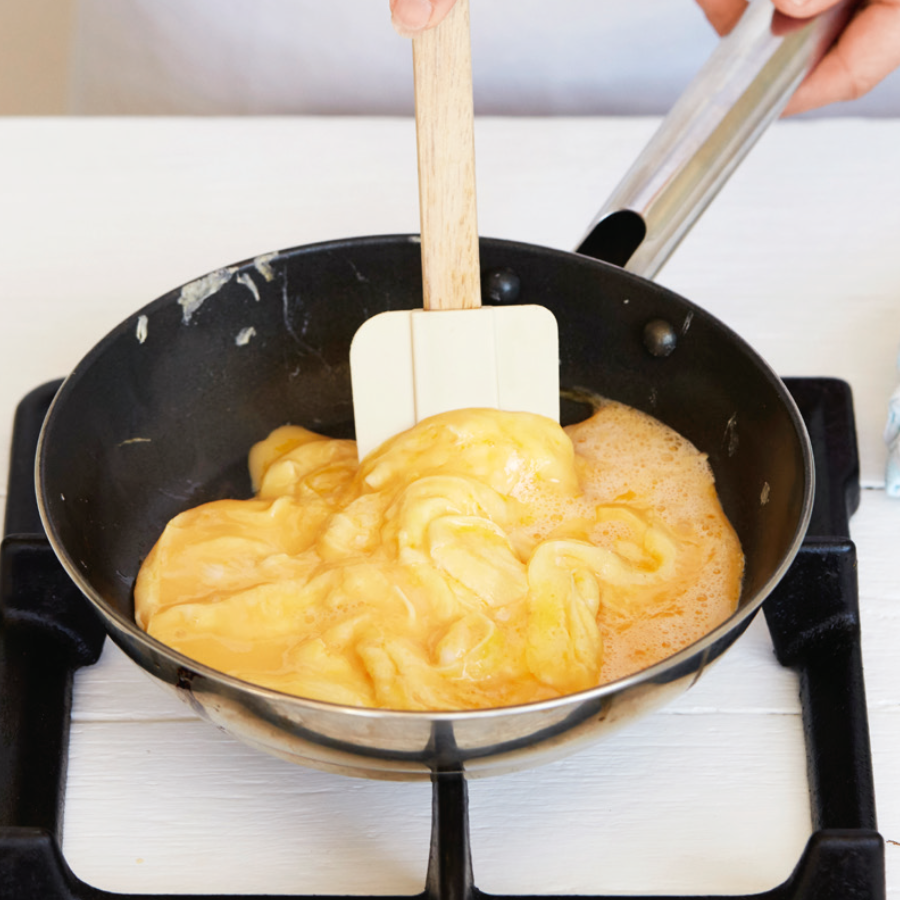 Tip: The eggs continue cooking once taken off the heat.