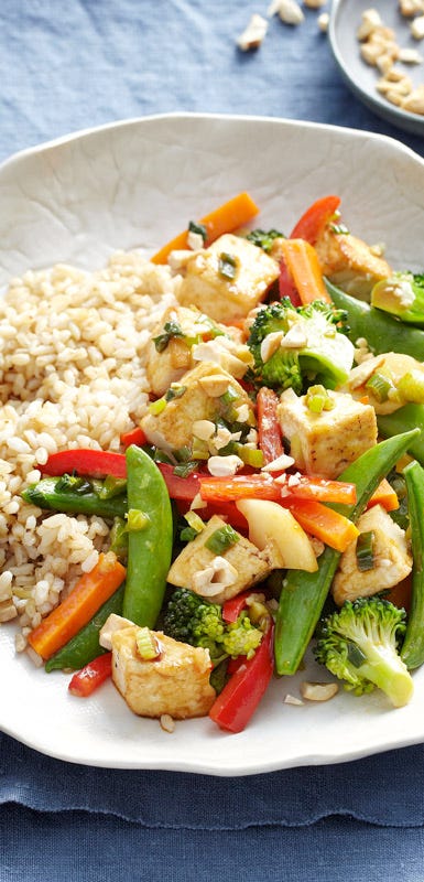 It’s hard to stick to a healthy eating plan if you’re always hungry—which is why nutritionists love tofu for weight loss, as it’s low in calories and high in protein, which helps prolong satisfaction after eating.