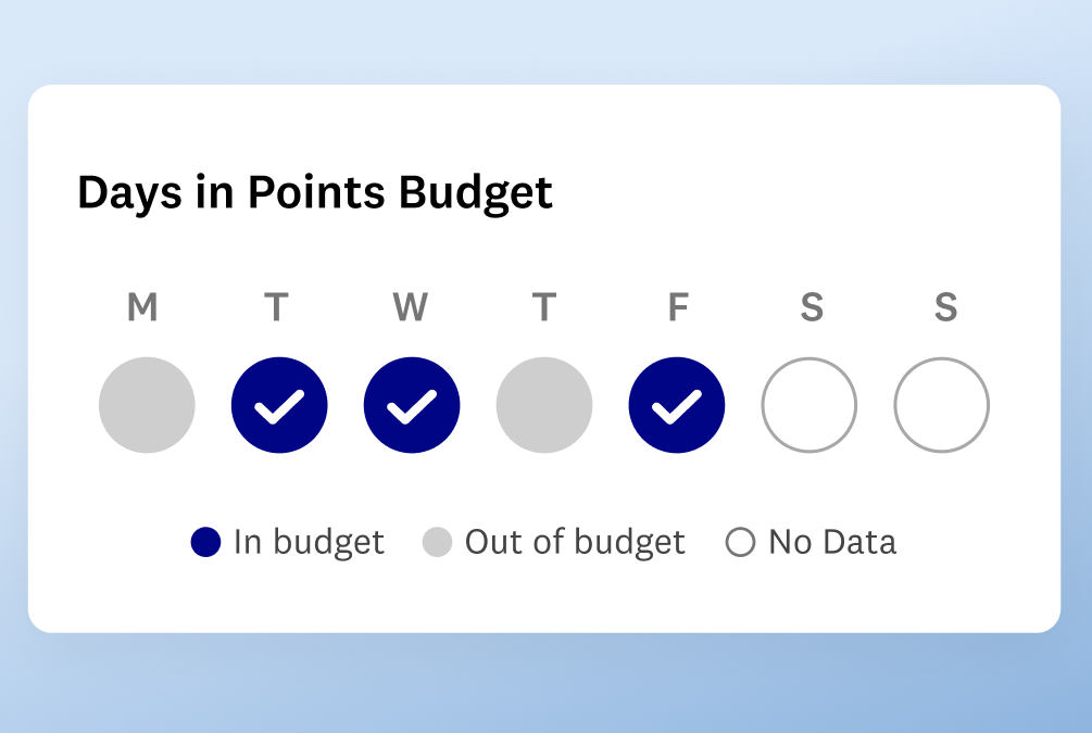 You'll earn a 🔵 blue dot each day you're in budget. Your budget includes your daily, weekly, and activity Points.