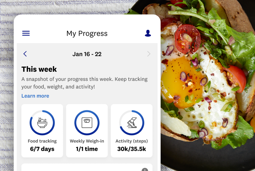 The Progress tab in the WeightWatchers® app is a place that showcases your weekly progress towards key tracking behaviours like food, weight, and activity—it's also where you will see your blue dots. As you track each week, your progress toward your goals will be reflected in the corresponding ring. 💪