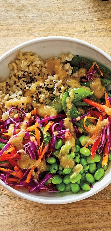 - Grain bowls: Shelled edamame adds protein, flavour, and a beautiful green colour to any grain bowl. Steam in the microwave or over the stove top and add the cooked edamame to Asian-inspired protein-rich grain bowls.