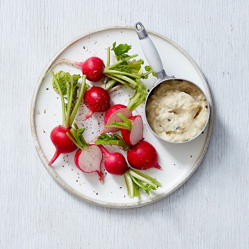 Serve radished with baba ganoush.