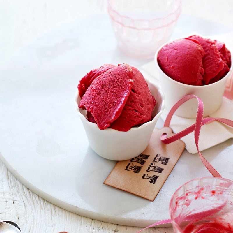 Peel and chop 1 banana and place in a snap lock bag in the freezer for 3 hours or until frozen. Process the banana in a food processor until smooth. Add ½ cup frozen raspberries and process until combined. Serve immediately.