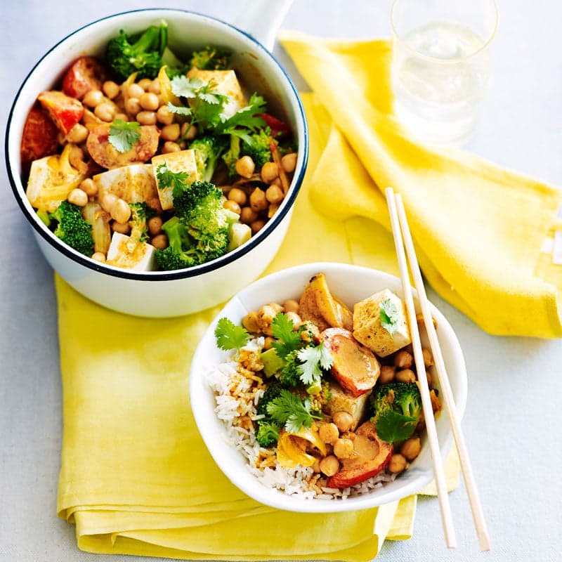 Broccoli, chickpea and tofu curry