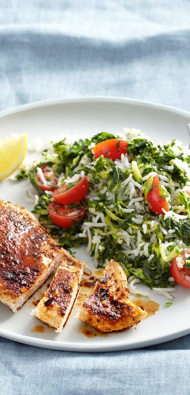 Massage the mixture into the chicken, then refrigerate for at least 4 hours or up to 12 hours. Spray chicken with oil then grill or sauté for 15-20 minutes over medium-high heat, or until just cooked through. Set aside to rest for 5 minutes.