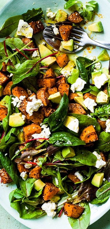 Adding diced avocado to your salad is a nice obvious way to enjoy more avo. But that's not your only option—they can also work in a green dressing to pour over your fresh salad. Avocados will not only add a creaminess to your salad but also provide a wonderful shot of healthy fat and fibre, plus vitamins and minerals that can help you feel full!