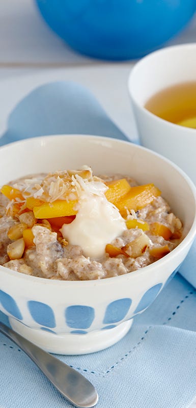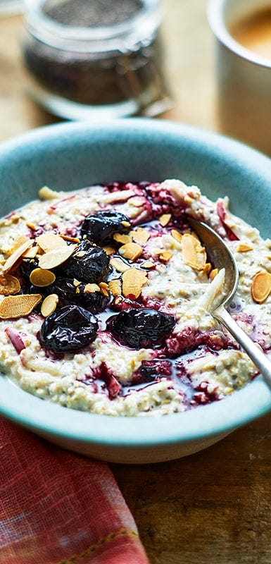 Wholegrain oats are naturally rich in beta-glucan, a soluble fibre that’s great for lowering cholesterol. Plus, oats are low GI for sustained energy and protein to help bust hunger. They also are thought to impact appetite-reducing hormones, which makes it more likely you’ll eat less.