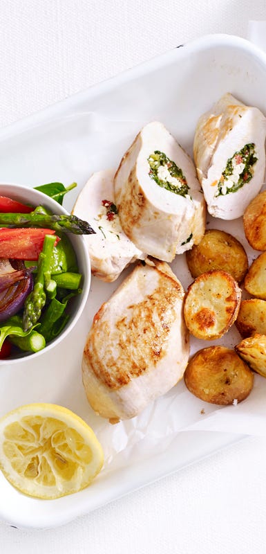 - Feta-stuffed chicken breast: Cut a pocket in each chicken breast and stuff with crumbled feta cheese, chopped spinach, and sun-dried tomatoes. Bake for 20-25 minutes at 180°C until chicken is cooked through.