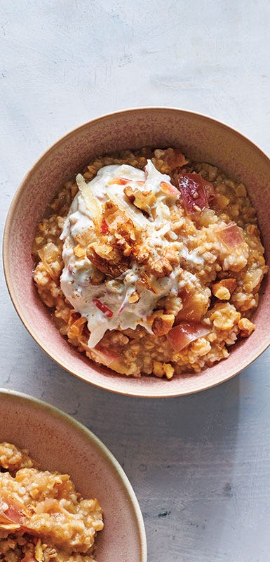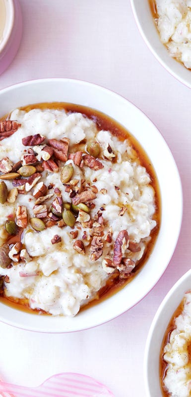 Whether you prefer sweet or savoury breakfast ideas, we have a selection of heart-healthy brekkie options for you below. Try our a savoury breakfast slice made with brown rice, protein-rich eggs and cottage cheese or sweet apple and vanilla bean porridge topped with toasted seeds and nuts.