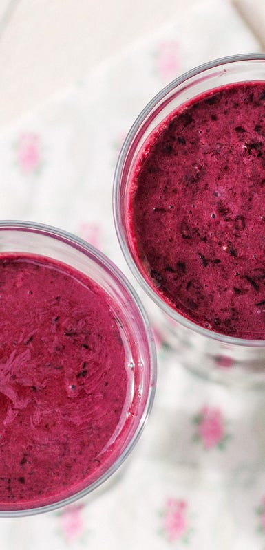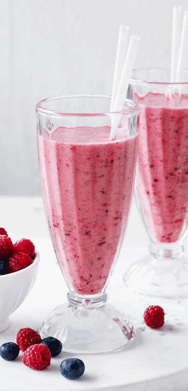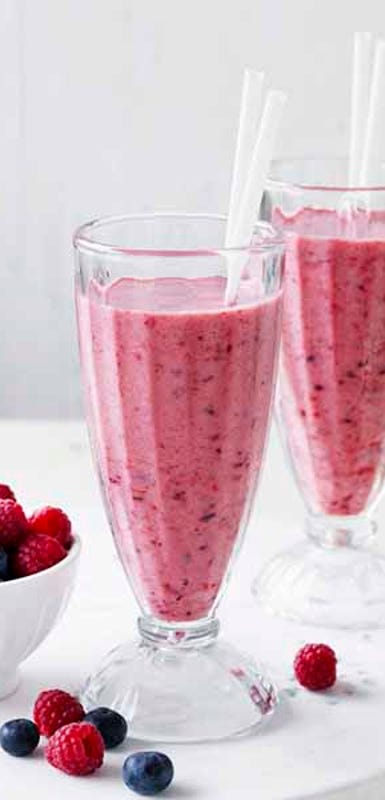 - Berry smoothie - mix together strawberries, blueberries, raspberries, 99% fat-free Greek yoghurt, and honey for a sweet and tangy treat that is also high in protein.