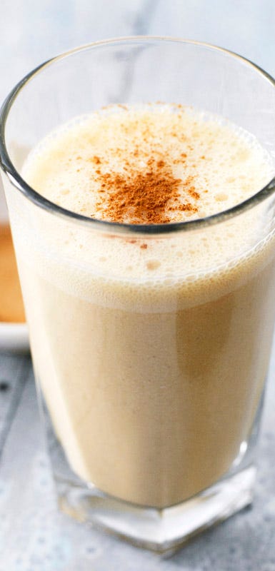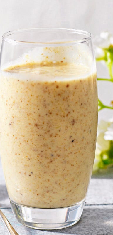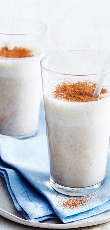 - Peanut butter and banana smoothie - blend together almond milk, banana, peanut butter, and a handful of spinach for a creamy and delicious smoothie that is high in protein and fibre.