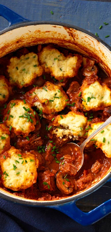 4. Stews and casseroles often taste better if you make them a day ahead. Fat will harden on the surface as it cools in the fridge so you can easily scrape it off.