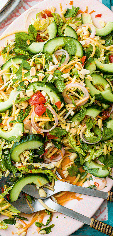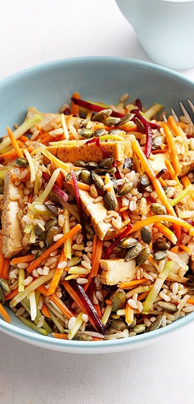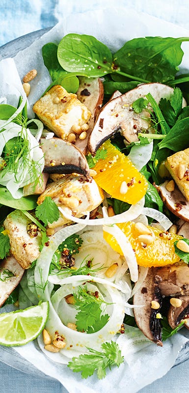 From our recipe for vibrant tofu, rice, and shredded vegetable salad to our comforting warm eggplant and pomegranate salad, there's a vegan salad here for every mood and occasion. Whether you're feeling like something light and refreshing or hearty and filling, our vegan salad recipes have got you covered. Enjoy exploring these flavourful creations and elevate your salad game with these mouthwatering options.