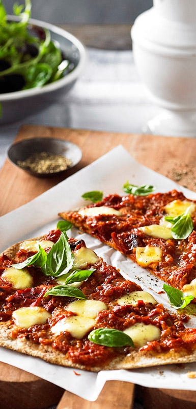 5. Swap a traditional frozen pizza base for wholemeal flatbread.