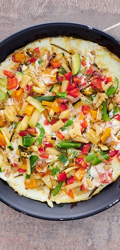 One of our personal faves is our open veggie egg white omelette. Creamy ricotta combined with hearty roast veggies delivers an egg white omelette full of flavour and texture. Roast a fresh batch of veggies, or use leftovers you already have in the fridge - the choice is yours.