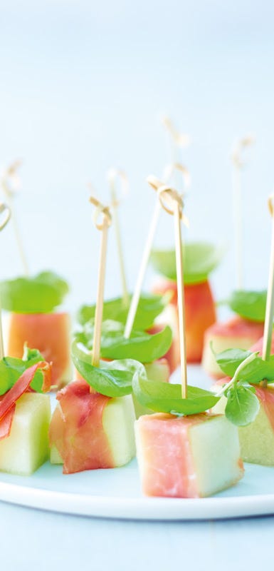 - Des viandes maigres telles que des tranches de jambon, poulet ou dinde maigre (éventuellement enroulées autour d’un cornichon avec un pique).