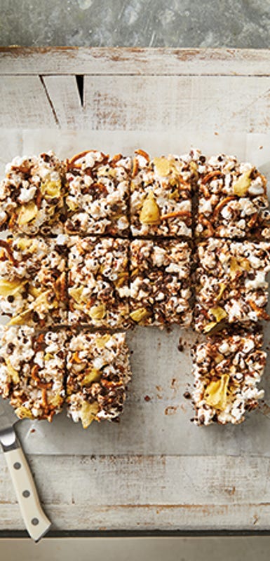 - Confectionnez des barres granola ou gâteaux maison et minimisez les ingrédients riches en calories (noix, chocolat, fruits séchés, etc.) en les remplaçant par du popcorn.
