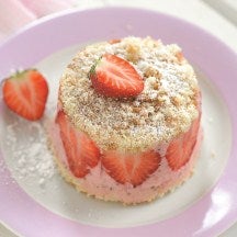 Fouetter 100 ml de crème (max. 15 % MG). L’incorporer à la crème aux fraises quand celle-ci commence à prendre. Répartir la crème dans les ramequins, bien lisser la surface et réserver au réfrigérateur durant ± 2 heures. Démouler les tartelettes et les saupoudrer de 2 cc de sucre glace.