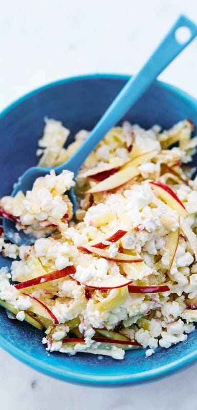 - Een appel in blokjes, vermengd met cottage cheese (eventueel bestrooid met kaneel)