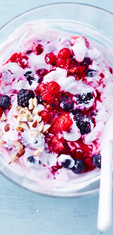 Voor de juiste consistentie kun je wat magere melk of yoghurt, vruchtensap, kokoswater of kokosmelk toevoegen.