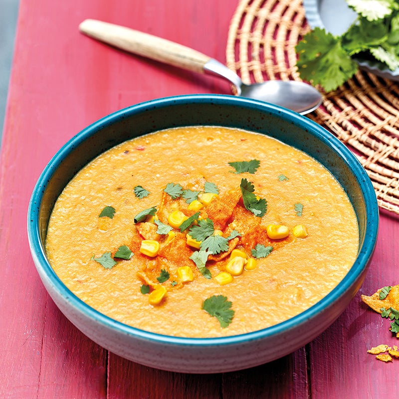 Maïssoep met tortillachips