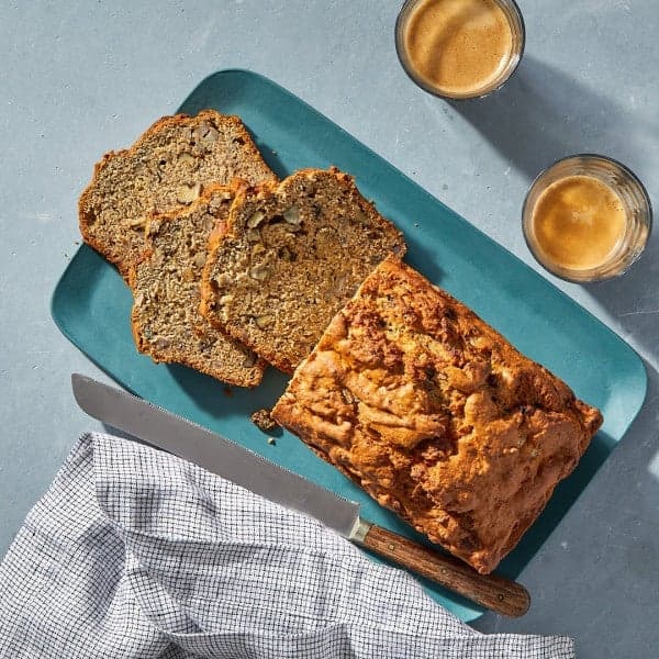 Moelleux et riche, ce pain aux bananes constitue un excellent déjeuner ou une collation dont vous et vos proches ne pourrez plus vous passer. C’est la meilleure façon d’utiliser les bananes qui ne sont plus à leur meilleur jour; il n’est pas nécessaire de les gaspiller. La combinaison de la farine tout usage et de la farine de blé entier donne au pain la meilleure texture tout en lui conférant un délicieux goût de noisette. Les noix hachées sont également un régal croquant, mais n’hésitez pas à les omettre si vous n’en voulez pas dans votre pain. Vous pouvez le déguster nature ou grillé avec du fromage à la crème à teneur réduite en matières grasses étalées sur chaque tranche.