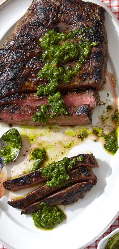 Tip: Serve a platter of lettuce leaves with the flank steak for wrapping.