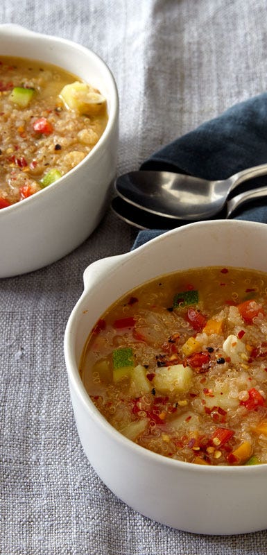 The more you pack your soup with fibre-rich veggies and lean protein the more filling it will be. Try adding beans for gut-healthy protein, which also keeps you full and satiated. Thicker options like stews and chili will also feel extra hearty and filling, helping you feel satisfied. Add in lean proteins like ground turkey or chicken, tofu, or tempeh to keep you satisfied between meals.