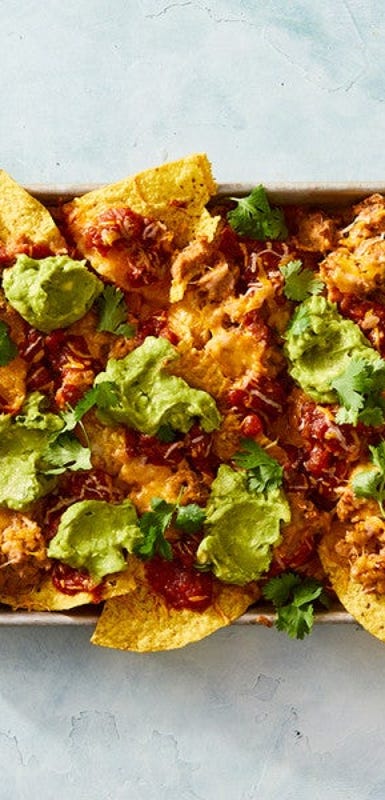 You’ll have plenty of fans when you wow the crowd with a platter piled high with hot nachos. Present these loaded chips family style, letting your guests serve themselves. Provide an additional selection of condiments such as pickled jalapeño peppers, salsa, olives, sliced green onions. and Greek yogurt or low fat sour cream so that everyone can customize their nachos exactly the way they like.