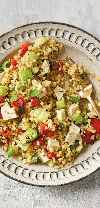 Grain salads and bowls are not only delicious, easy-to-prepare, and packed with nourishing, satiating ingredients, but the recipes in this section can also be improvised by using similar, low-Point ingredients. Out of the grain specified in the recipe? Try using any other grain you might have on hand—bulgur, brown rice, quinoa, farro, or pearl barley can be used interchangeably without altering the flavour of the finished dish. Another selling point for grain-based salads and bowls? They can be made ahead of time and kept in the fridge for up to 4 days or until you’re ready to enjoy them. These recipes are also the perfect way to use up leftover roasted vegetables, sharp cheese, fresh herbs, and shredded or cubed chicken breast you might have hiding in your fridge over the holidays.