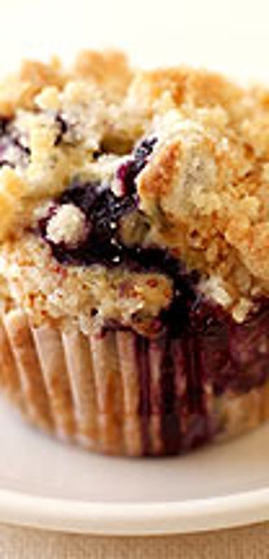 Blueberries add an antioxidant punch to these breakfast (or mid-morning snack!) muffins. It doesn’t hurt to add a small handful of fresh berries on the side.