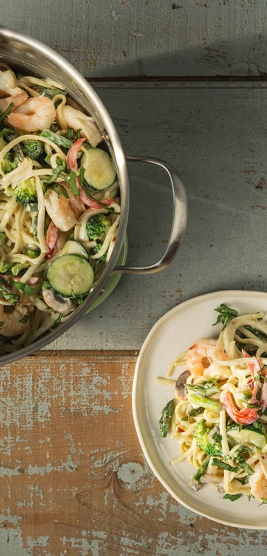 TIP: Almost all the shrimp you buy has been frozen at some point in time—so there's no need to splurge for fresh alternatives. For easy meal prep, buy frozen shrimp that's precooked, cleaned, and deveined. Defrost on a rimmed sheet pan or storage container in your fridge.
