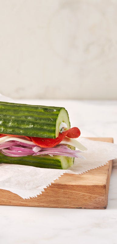 “I love to ‘zoodle’ a cucumber for a healthy take on pasta salad,” she says. “The cucumber holds up beautifully using a spiralizer and creates delicious crunchy veggie ‘noodles’ that you can add all kinds dressings, sauces or more veggies to. I make a traditional Greek salad with a twist by spiralizing the cucumbers, adding tomatoes, kalamata olives, red onions, oregano and Greek dressing.”