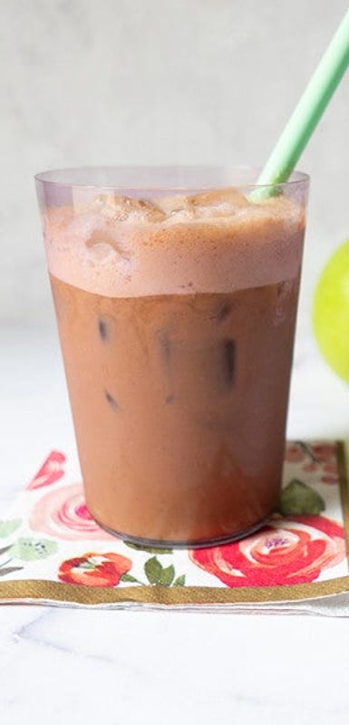While the ingredients in any given breakfast beverage might seem healthy, store bought smoothies, juices and coffee beverages can easily have Points values in the double digits (with price tags to match). Learning to become your own barista not only gives you complete control about what goes into your morning brew or shake, it’s also a lot of fun to make your own specialty drinks at home. Instead of whipped creams and high-sugar syrups, these drink recipes are made with healthy ingredients such as almond milk, tea, instant coffee and protein powder.