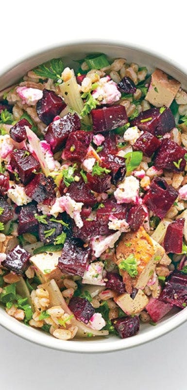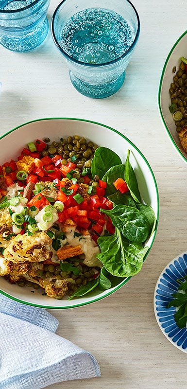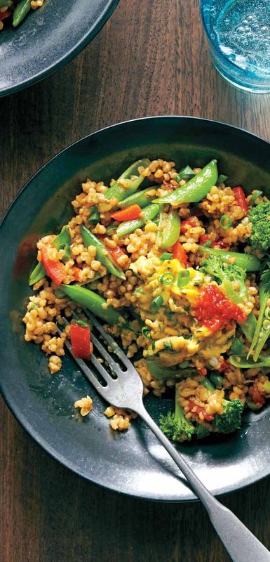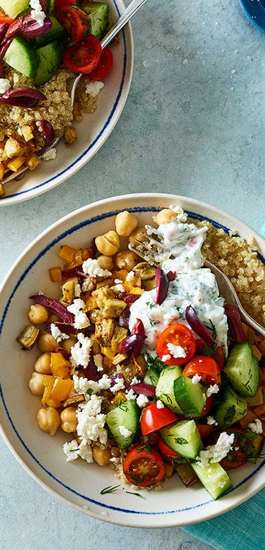 Make a large batch of quinoa, farro, bulgur, lentils, or other veggie-bowl base at the beginning of the week and use it to make grain and salad bowls all week long. Putting together quick, healthy vegetarian meals is even easier if you’ve prepped veggies (use any of the above recipes), dressing, and extra add-ins (such as crumbled or shredded cheese, dried fruit, hard-boiled eggs, and marinated tofu or other plant-based protein.)