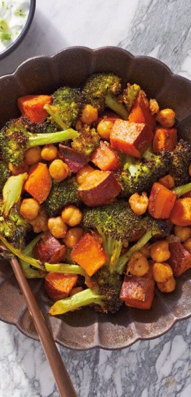 Preparing healthy vegetarian meals for dinner is a snap when all the ingredients are cooked on a single sheet pan or roasting pan. We recommend serving the following recipes with a serving of whole grains and a protein (see above for suggestions.) To bring all of the flavours together, try finishing the recipe with a drizzle of our soy-tahini dressing, lemony tahini sauce, or any other flavourful sauce your family loves.