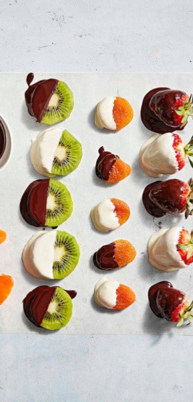 - Coat strawberry, orange, and kiwi slices (vit.C) with dark chocolate (catechins)